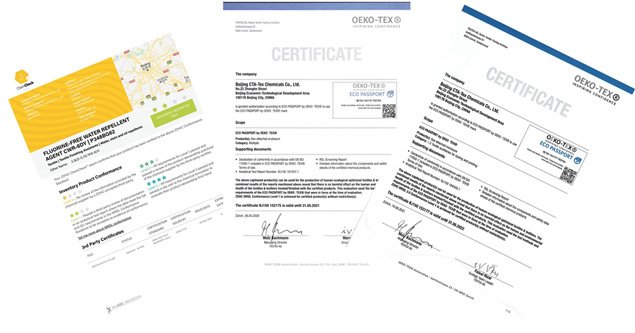The ecological textile additives developed by China Textile Chemical have been certified by OEKO-TEX® (International Textile and Leather Ecological Research and Testing Association) and ZDHC (Zero Discharge of Harmful Chemicals Organization) for three consecutive years since 2019. The certified products cover waterproofing agent, environmental cleaning agent, environmental protection and crude oil, nylon additives, dyes and so on. With the help of environmental protection quality assurance, it promotes downstream environmental protection upgrade and at the same time makes customers feel at ease with it, and improves the market share of Ecological textile additives of Zhongfang Chemical.
