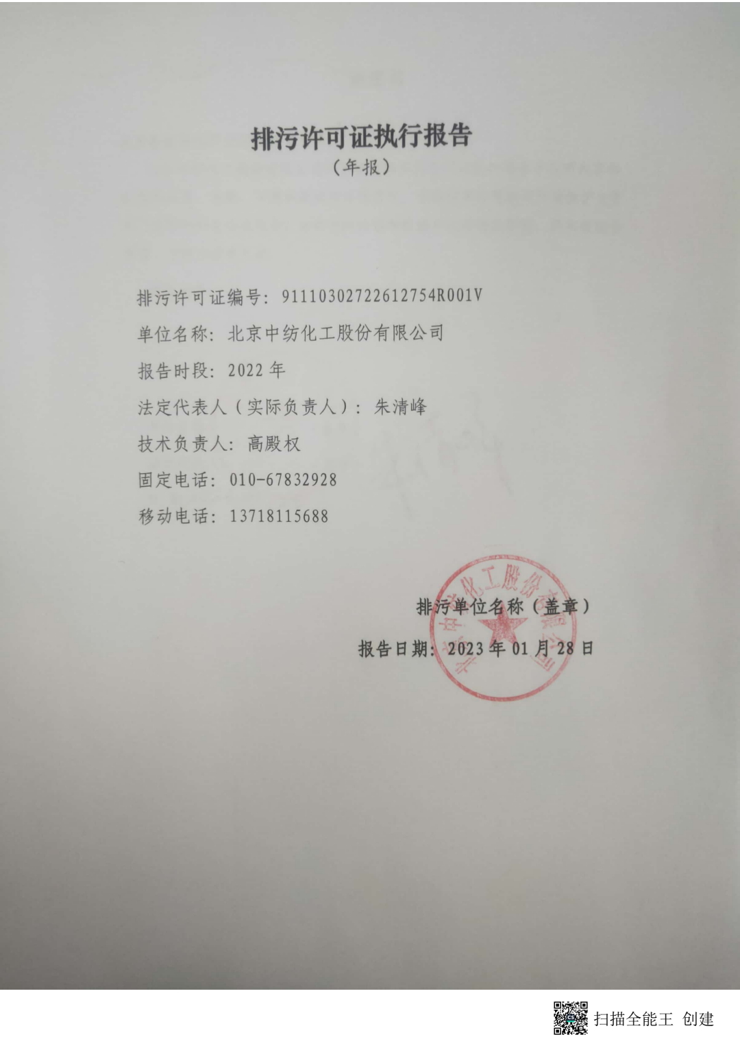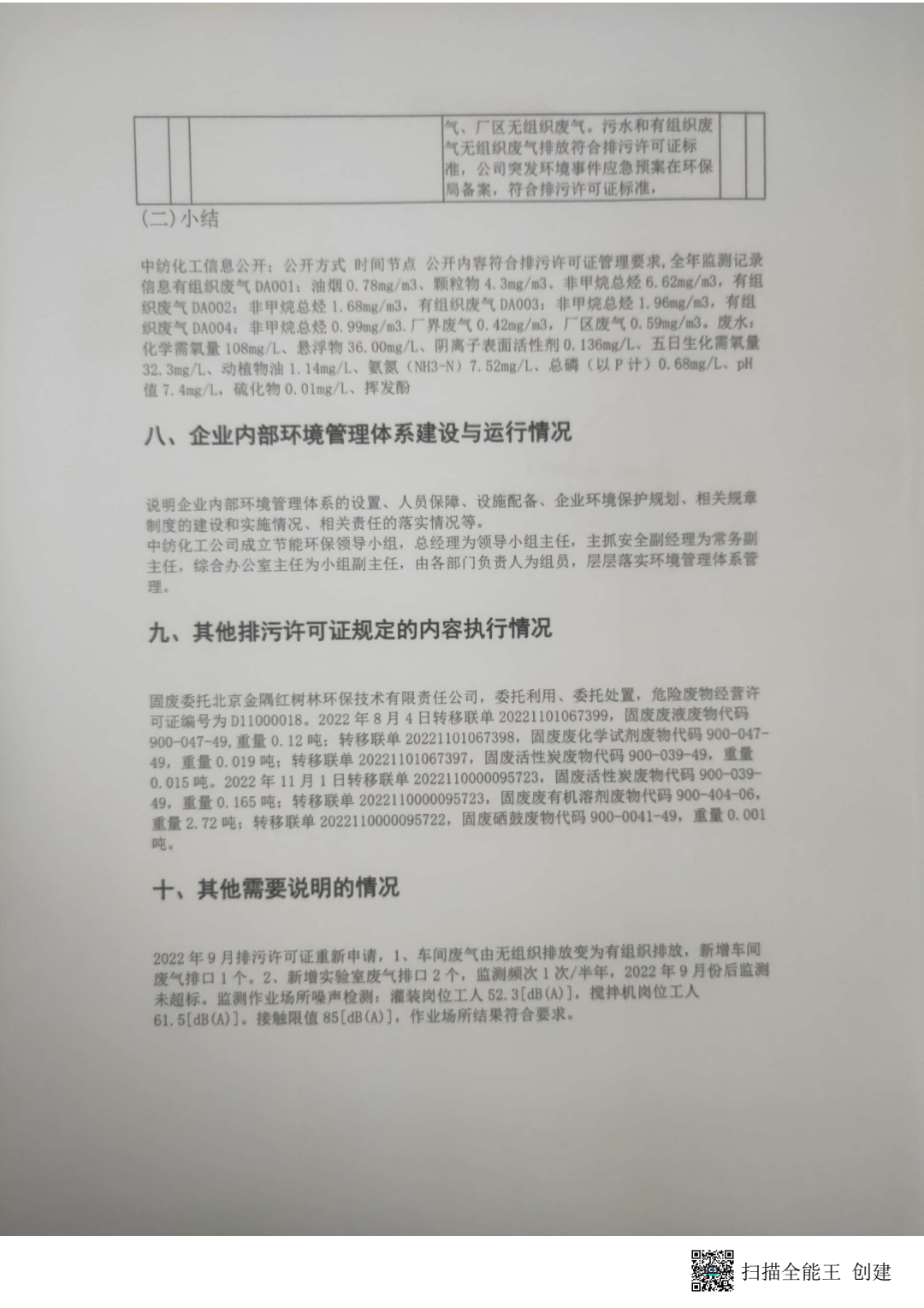 2022 - Annual Report of China Textile Chemical Emission Permit