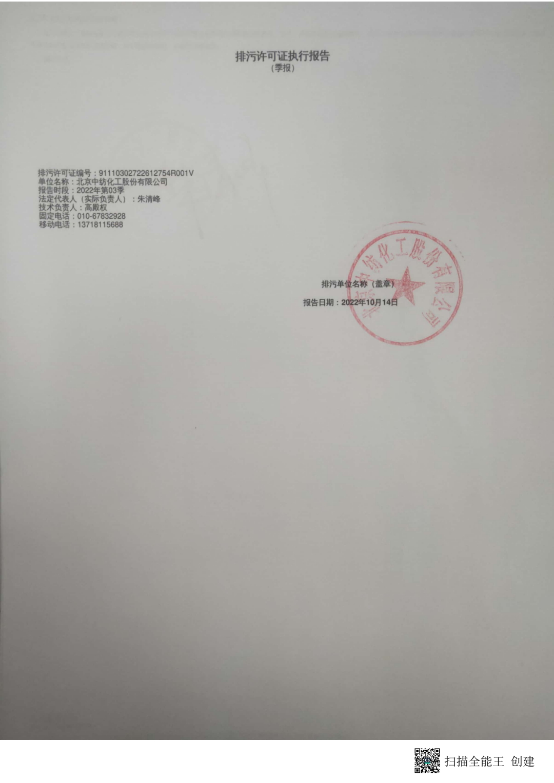 2022 - Third quarter quarterly report of China Textile Chemical Emission Permit Execution